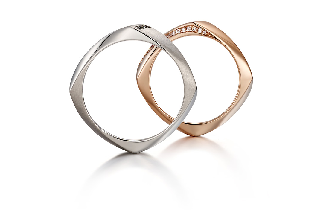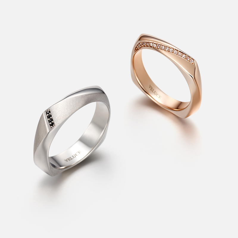 롬버스 웨딩밴드는 다양성을 강조합니다. 서로 다른 두 개의 대각선 면은 각자의 유니크한 개성을 상징하고 있으며, 이것이 결합하여 하나의 아름다운 선율를 이룹니다.